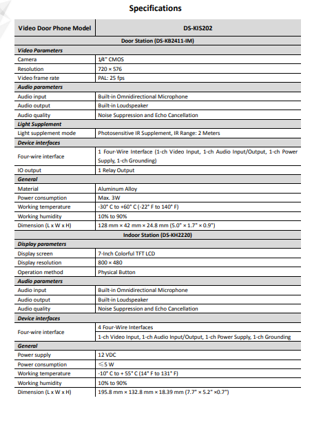 Hikvision DS-KIS202 Video Door Phone Kit (7-Inch Indoor Monitor + Outdoor Door Station)