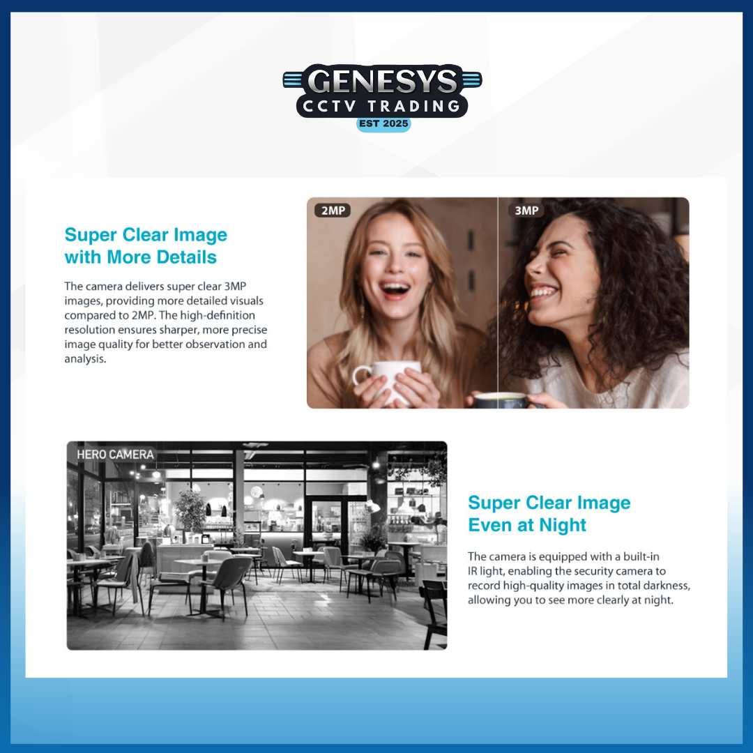 The Dahua H3A is a high-performance 3MP indoor Wi-Fi camera designed for easy installation and reliable protection. It delivers clear video quality and wide-angle coverage — perfect for homes, offices, and small retail stores.